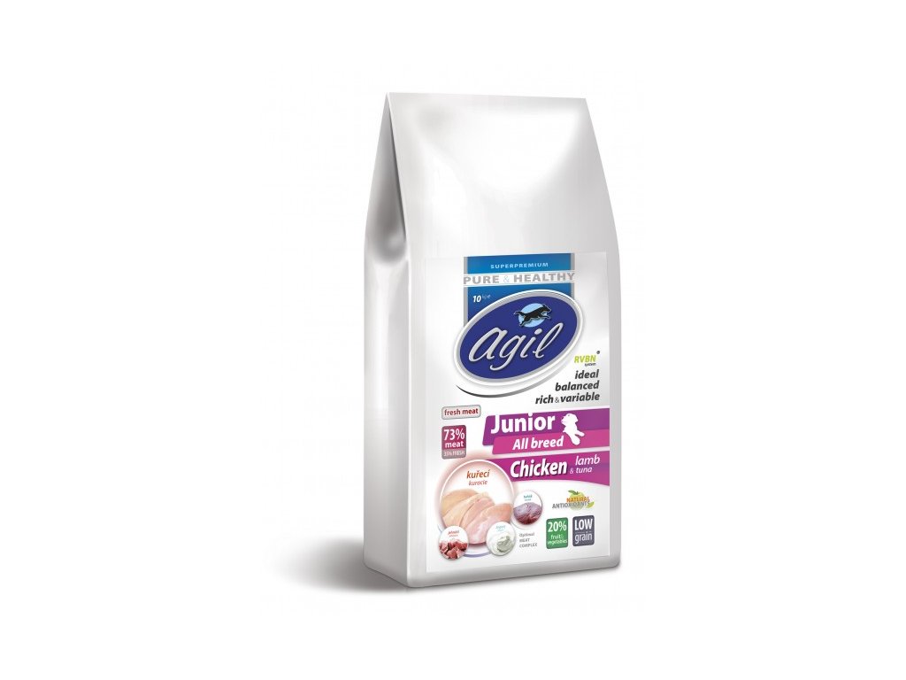 Agil Junior Low Grain – kuře, jehněčí a tuňák | granule pro štěňata a juniory