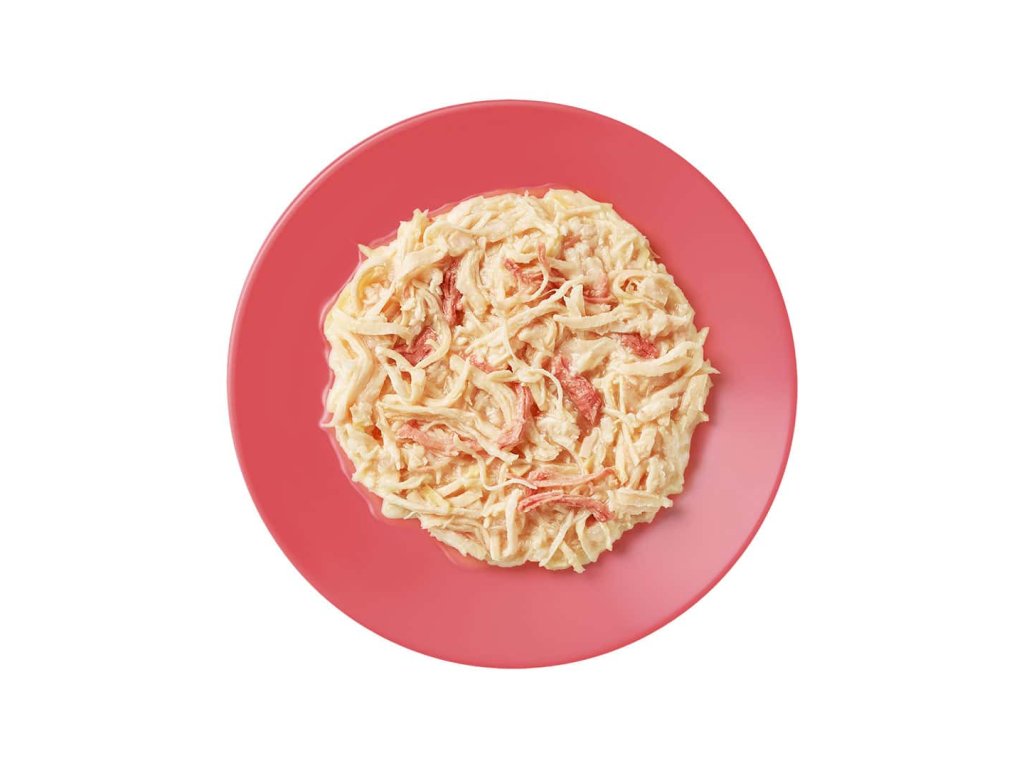 Prémiová konzerva s 75 % čistého masa – trhaná kuřecí prsa s kachnou v lahodném vývaru. 100% přírodní doplňkové krmivo pro dospělé kočky.