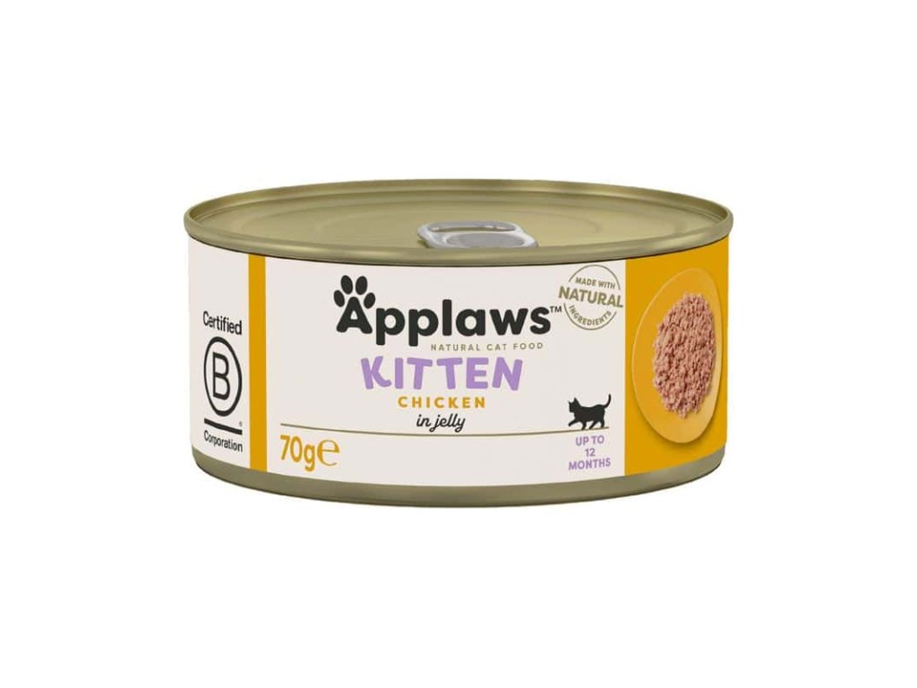 Applaws Kitten Jelly Kuře je jemná a lehce stravitelná receptura určená pro koťata od odstavu až do přibližně 14 měsíců věku.