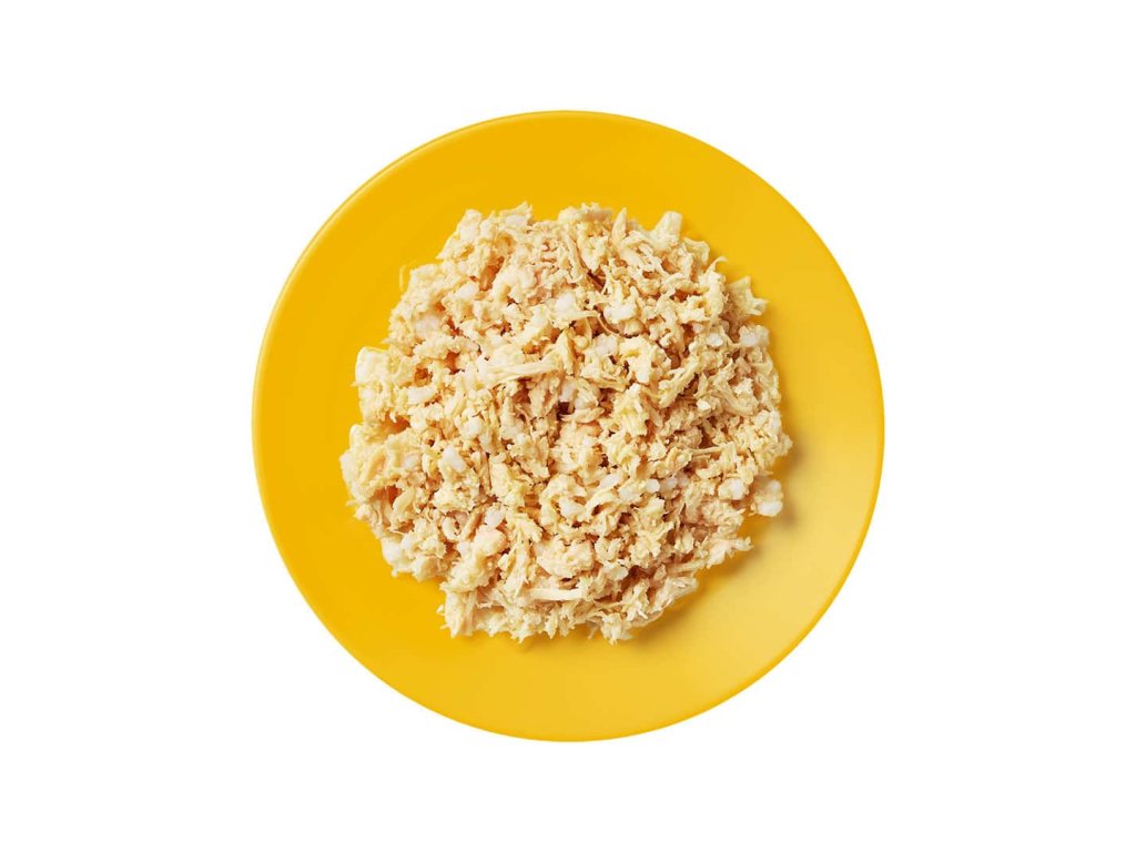 Vysoký obsah čistého masa (75 %) – skutečné trhané kuřecí prso, žádné náhražky