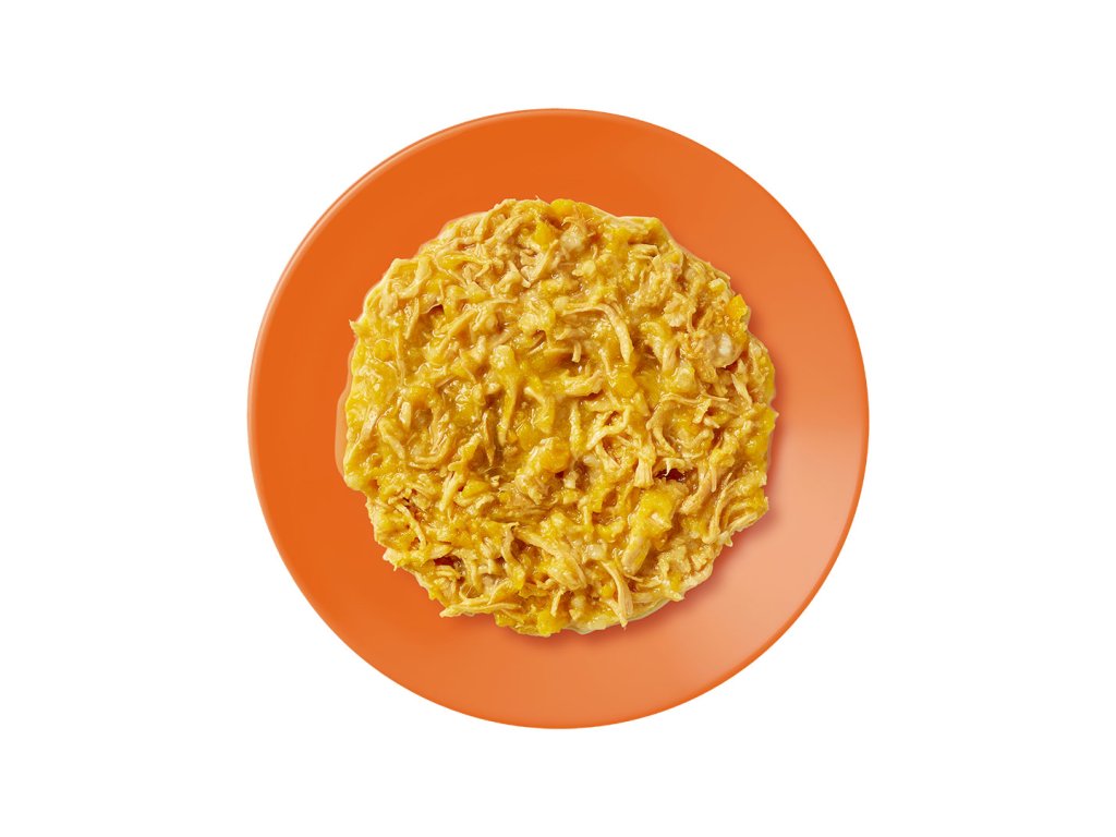 Složení: 50% kuřecí prsa, 25% dýně, 23% kuřecí vývar, 2% rýže.