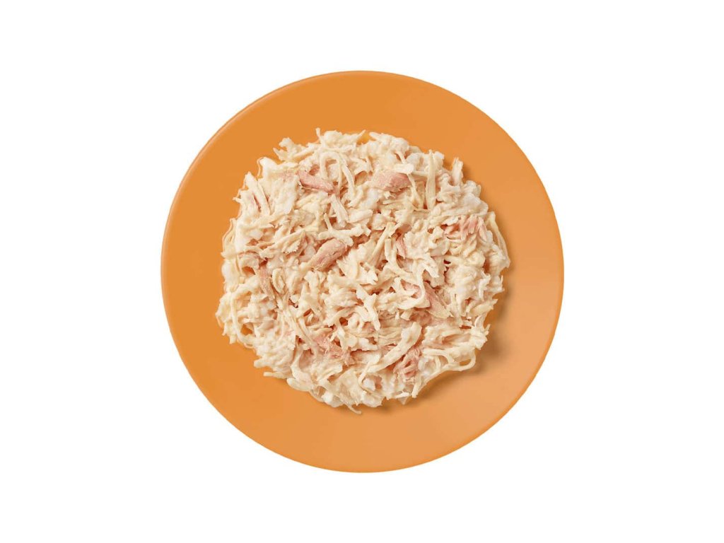 Složení: 70% kuřecí prsa, kuřecí vývar, 5% tuňák, rýže.