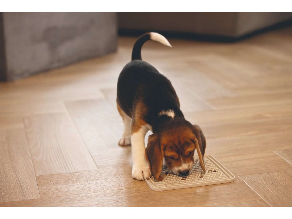 V horkých dnech můžeš podložku využít i jako osvěžující pamlsek – stačí ji potřít oblíbeným krmivem a vložit do mrazáku. Štěně tak získá chutnou, studenou a dlouhotrvající zábavu.