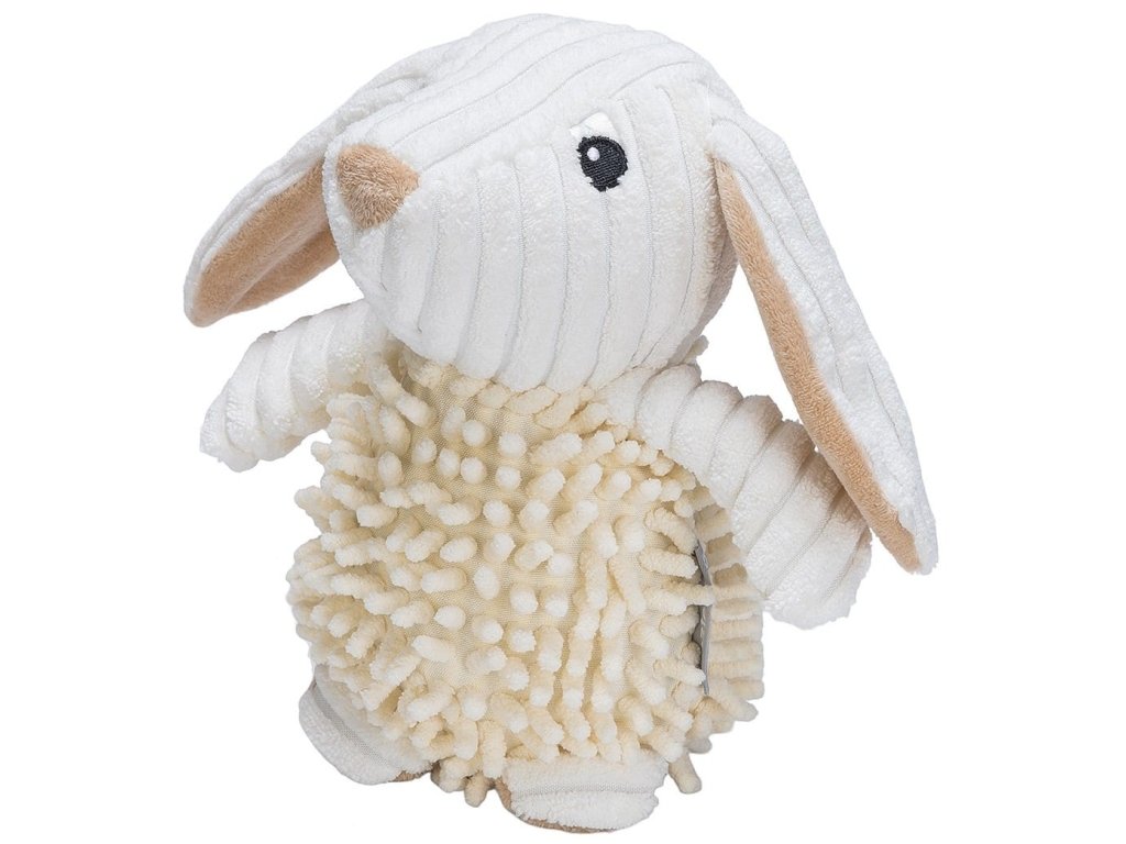 Králíček Jenno je navíc zcela bez zvuku, což ocení zejména majitelé psů, kteří preferují tiché hračky – ideální do domácností, kde je potřeba klid, nebo pro psy, kteří se lekají pískátek. Díky atraktivní textuře a měkkému tělu si ji psi rádi nosí, tulí se k ní a využívají ji jako uklidňující předmět třeba i v pelíšku nebo při cestování.