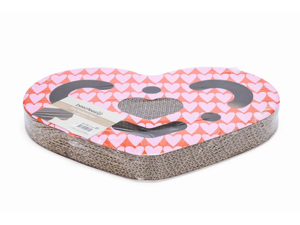 Beeztees Škrabadlo pro kočky Love 40 × 30 cm - kartonové srdce s míčkem