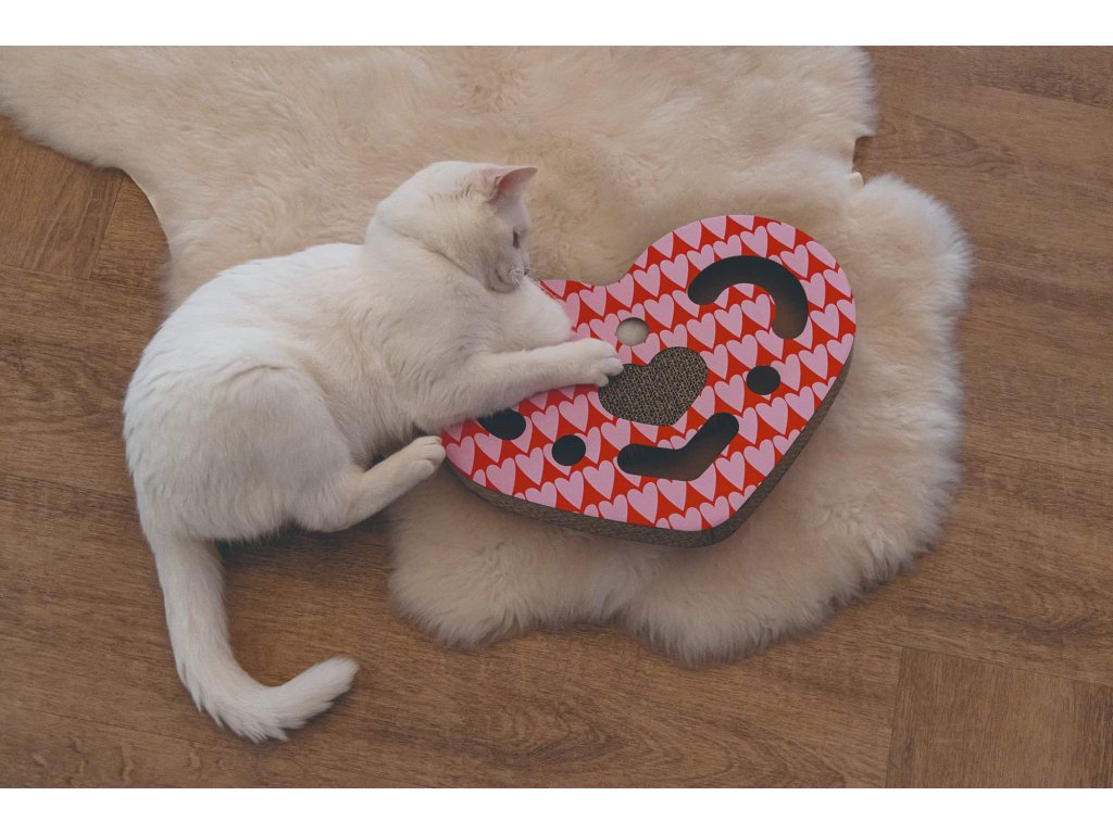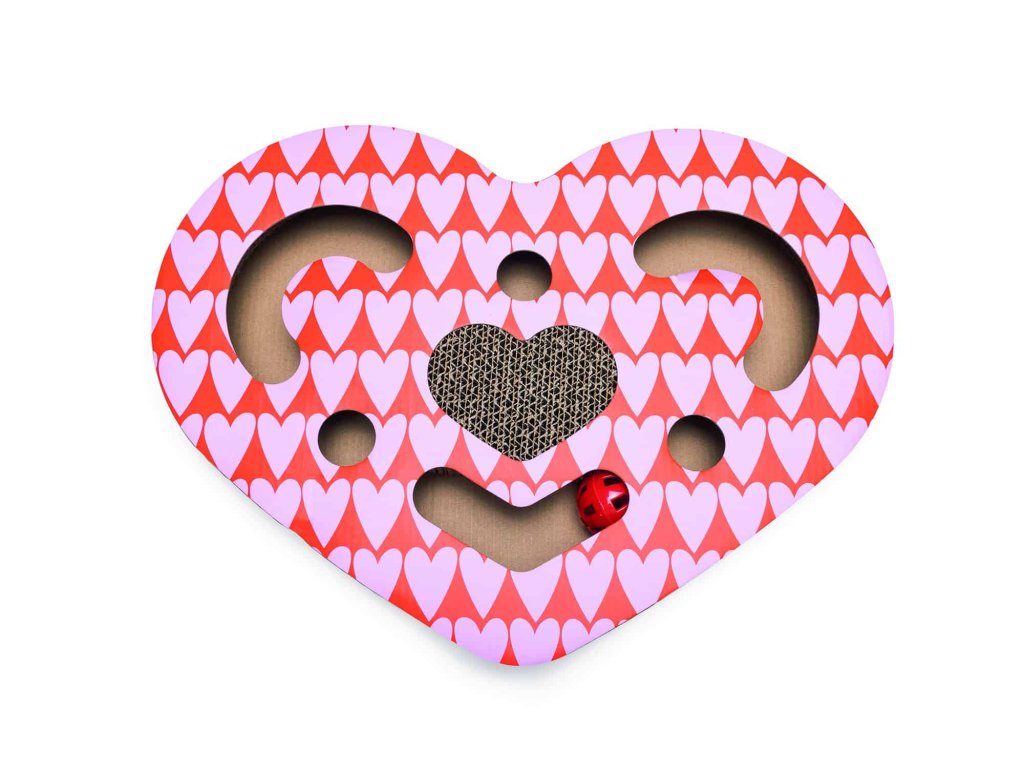 Beeztees Love škrabadlo kombinuje karton, který kočky zbožňují, s hracím míčkem ukrytým v labyrintu. Kočka si tak brousí drápky, procvičuje postřeh a zároveň se skvěle baví – vše v jednom produktu.