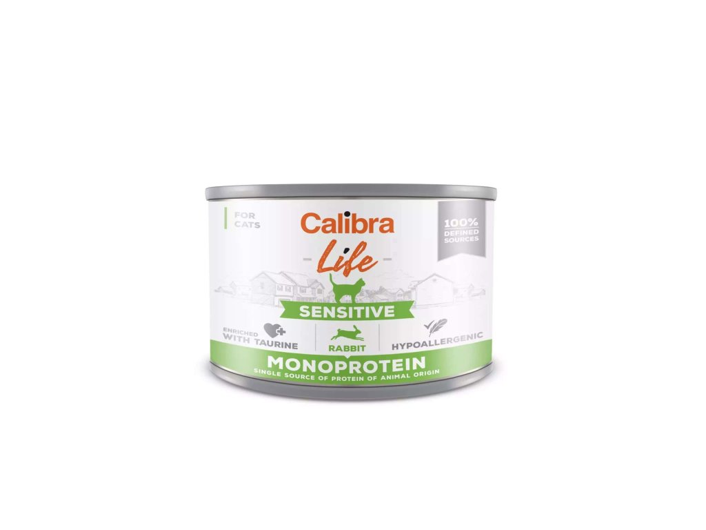 Calibra Cat Life Sensitive Rabbit je kompletní vlhké krmivo pro dospělé kočky založené na jediném druhu živočišného proteinu – králíkovi (70 %). Monoproteinová, hypoalergenní receptura s omezeným počtem surovin je navržena tak, aby minimalizovala riziko potravních intolerancí a podpořila snadnou stravitelnost.