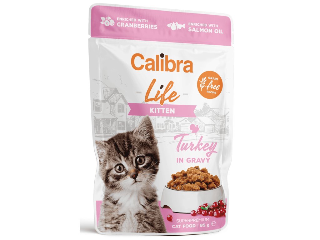 Superprémiová kapsička pro koťata s krůtím masem ve filetech v omáčce, bez obilovin, s taurinem, brusinkami a lososovým olejem pro zdravý růst a silnou imunitu.