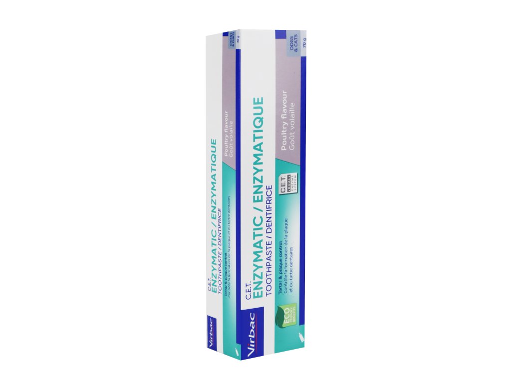 C.E.T. enzymatická zubní pasta je určena pro pravidelné čištění zubů psů a koček. Obsahuje unikátní dvojitý enzymatický systém, který podporuje přirozené obranné mechanismy v dutině ústní a pomáhá omezovat tvorbu zubního plaku.