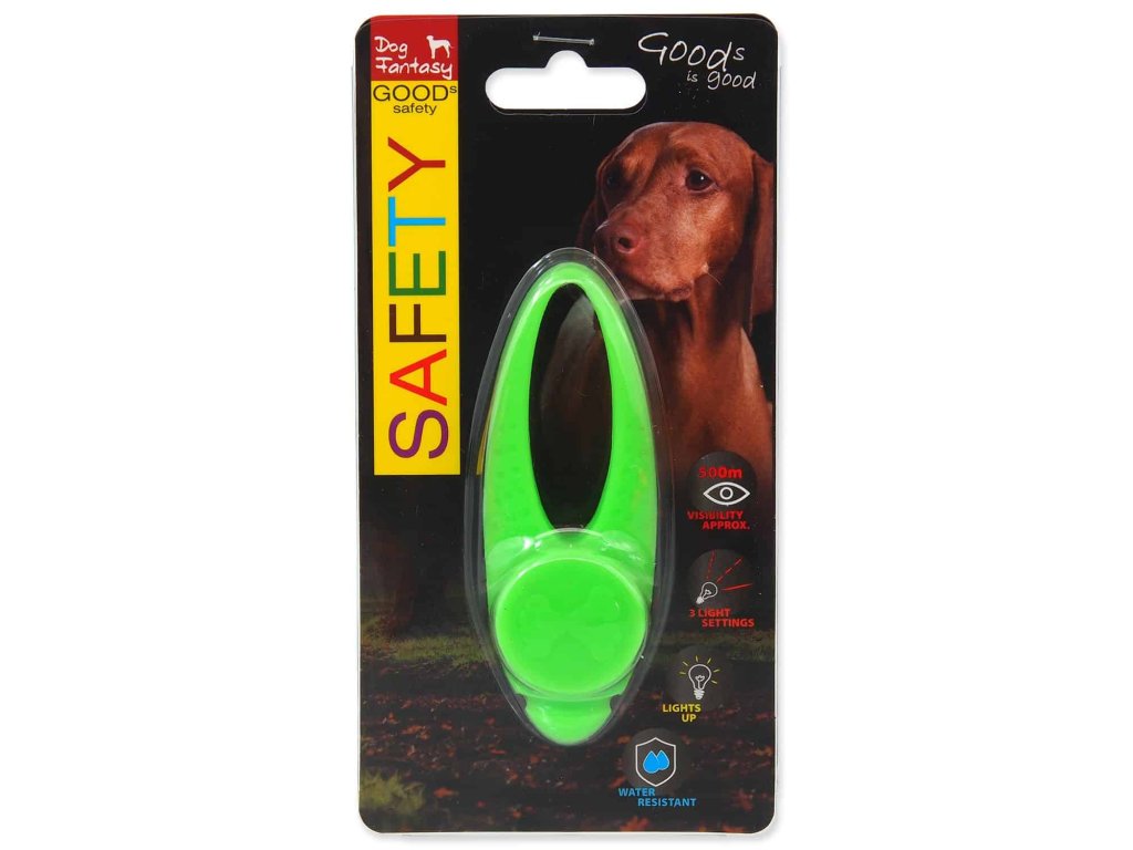 Přívěsek Dog Fantasy LED silikonový je praktickým bezpečnostním doplňkem pro psy všech velikostí. Slouží k lepšímu označení psa při venčení za tmy, šera, mlhy nebo zhoršené viditelnosti. Díky silnému LED světlu je pes viditelný až na vzdálenost 500 metrů, což výrazně zvyšuje bezpečnost nejen psa, ale i jeho majitele.