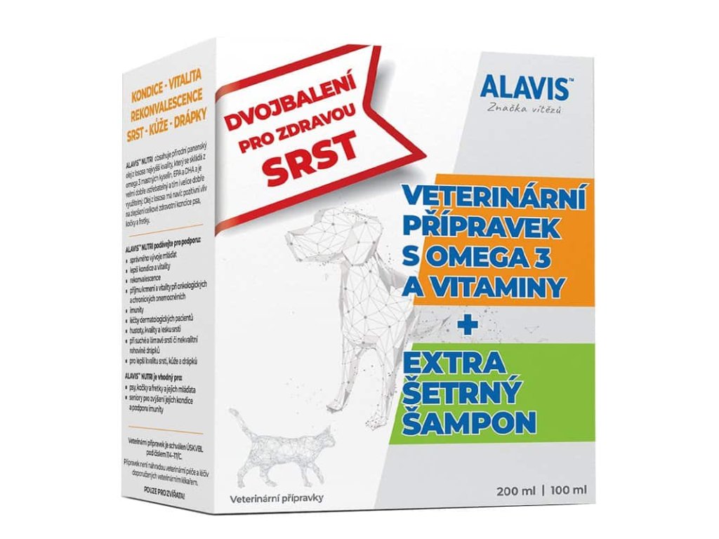 Kombo dvou skvělých produktů pro zdraví, krásu a pohodlí tvého mazlíčka — Alavis Extra Šetrný šampon pro jemnou a účinnou péči o srst a kůži a Alavis Nutri 200 ml, přírodní lososový olej s vitaminy a minerály pro podporu vitality, imunity a kvality srsti. Ideální kombinace pro domácí péči, rekonvalescenci i dlouhodobé zdraví.