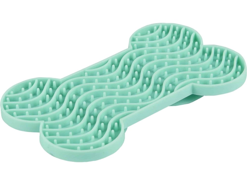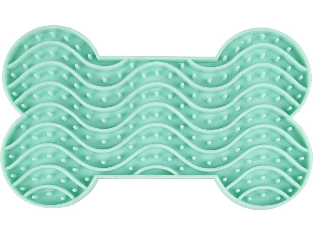 FLAMINGO Yummee lízací podložka je praktická pomůcka pro psy v mintovém provedení, která podporuje klidné chování, zpomaluje krmení a zabaví psa při lízání pamlsků.