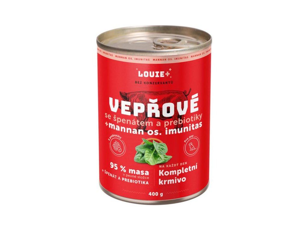 LOUIE konzerva vepřové se špenátem a prebotiky 400g
