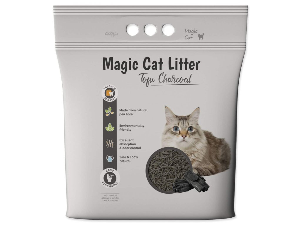Magic Litter Tofu Dřevěné uhlí je vyrobená z přírodní hrachové (tofu) vlákniny, která okamžitě absorbuje tekutinu a vytváří pevné hrudky. Aktivní složka s vůní dřevěného uhlí přirozeně neutralizuje nepříjemné pachy bez agresivní parfemace. Hladká struktura granulí zajišťuje, že stelivo neulpívá na tlapkách a zůstává tam, kde má – v toaletě. Vzniklé hrudky lze snadno spláchnout do WC.