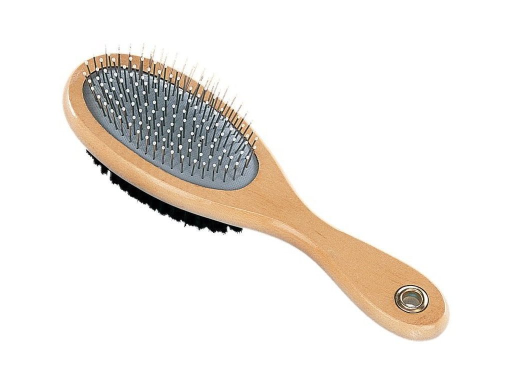 Strana s kovovými drátky pomáhá jemně rozčesat zacuchanou srst, odstranit uvolněné chlupy a nečistoty. Druhá strana s jemnými štětinami srst uhlazuje, dodává jí přirozený lesk a stimuluje pokožku.