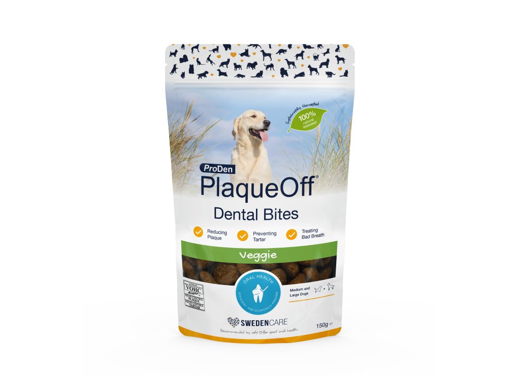 ProDen PlaqueOff® Dental Bites jsou klinicky ověřené dentální pamlsky s obsahem mořské řasy A.N ProDen®, která pomáhá omezovat tvorbu zubního plaku, zubního kamene a zápachu z tlamy.