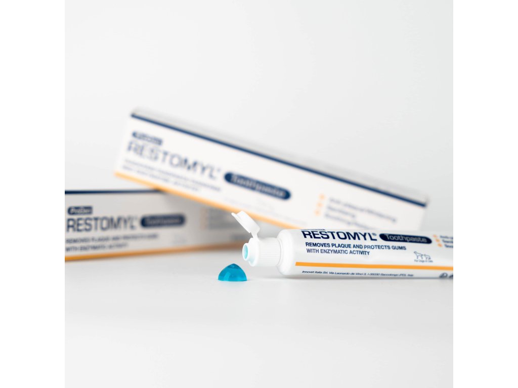 ProDen RESTOMYL® je zubní pasta určená pro pravidelnou hygienu ústní dutiny psů a koček.