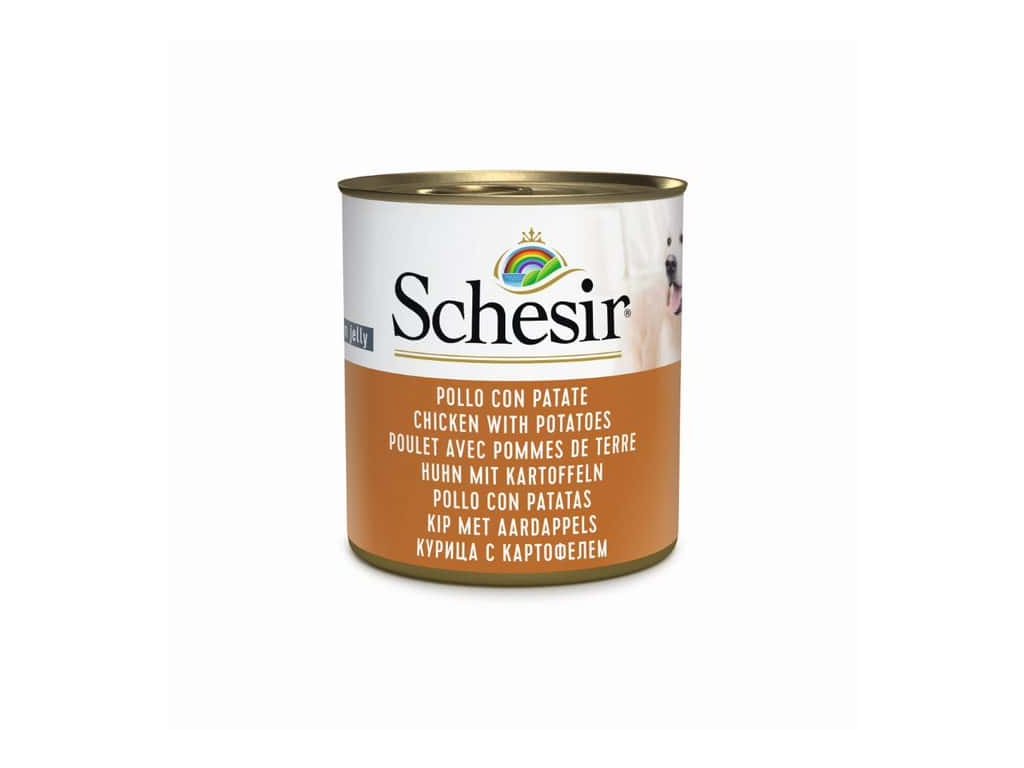 SCHESIR Dog Adult Kuře s bramborami je prémiové doplňkové vlhké krmivo pro dospělé psy, ideální pro každodenní zpestření jídelníčku. Základem jsou opravdové kousky kuřecího filet, které doplňuje brambory a zelenina, čímž vzniká chutná a dobře stravitelná směs.
