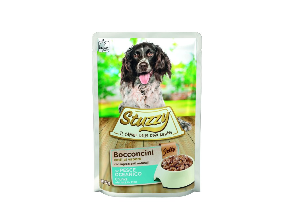 Chutné a dobře stravitelné mokré krmivo, Stuzzy Dog Adult s kousky ryby od značky Stuzzy Dog je skvělá volba. Receptura je založena na masu a rybích složkách vařených v páře, díky čemuž si zachovávají přirozenou chuť i nutriční hodnoty.