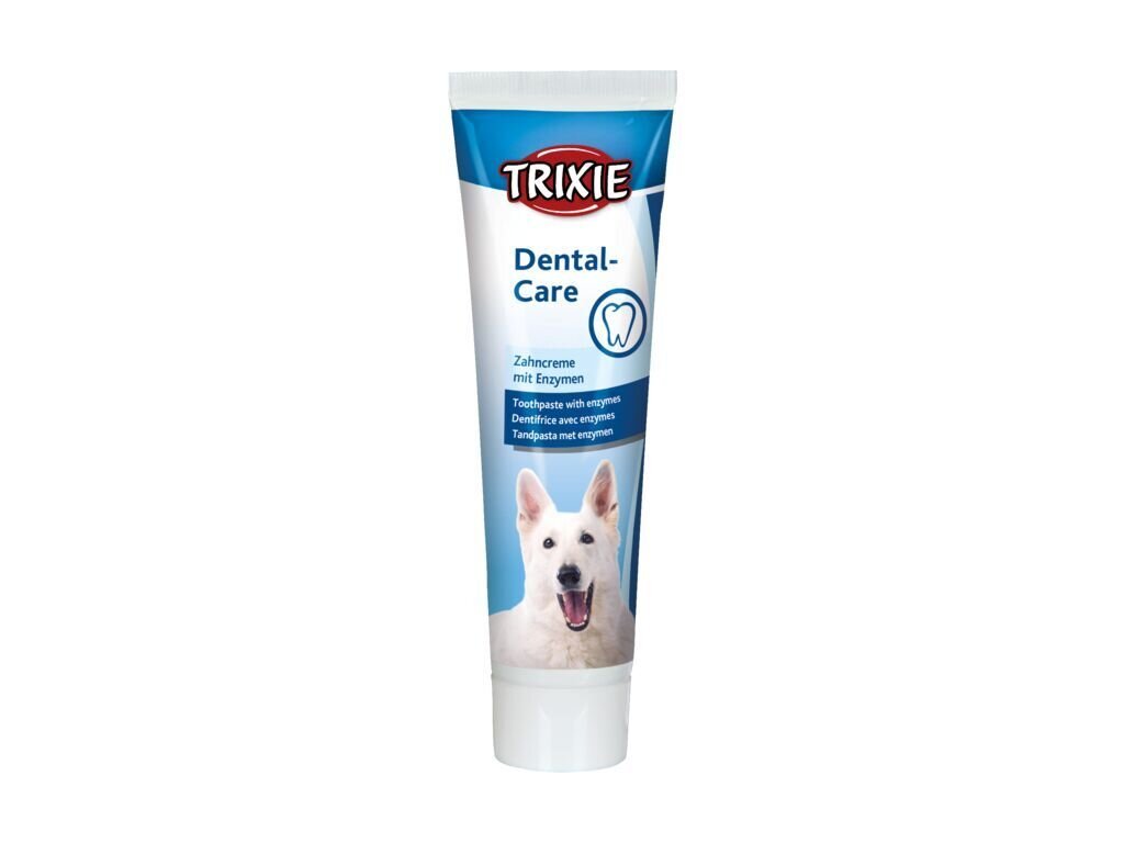 Trixie Enzymatická zubní pasta pro psy obsahuje enzymový komplex, který aktivuje a podporuje přirozené obranné mechanismy v dutině ústní.