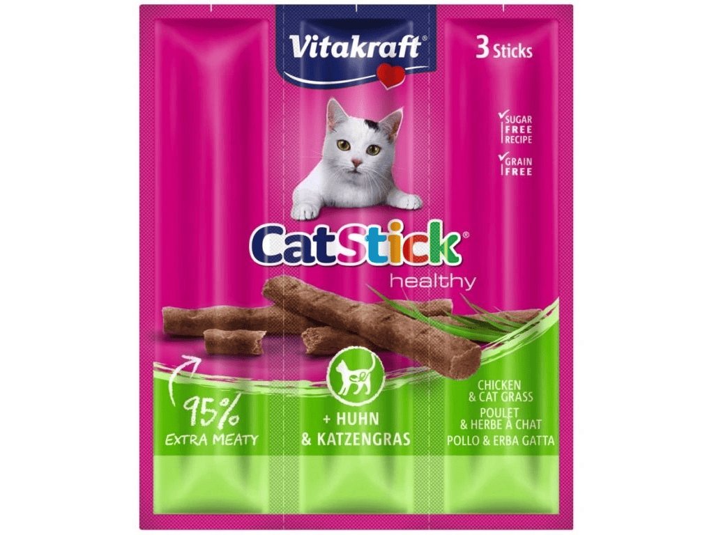 Vitakraft Cat Stick® mini jsou měkké extra masové tyčinky určené jako každodenní odměna pro kočky. Díky vysokému podílu masa mají intenzivní aroma a výraznou chuť, kterou si zamilují i náročné kočičí jazýčky.