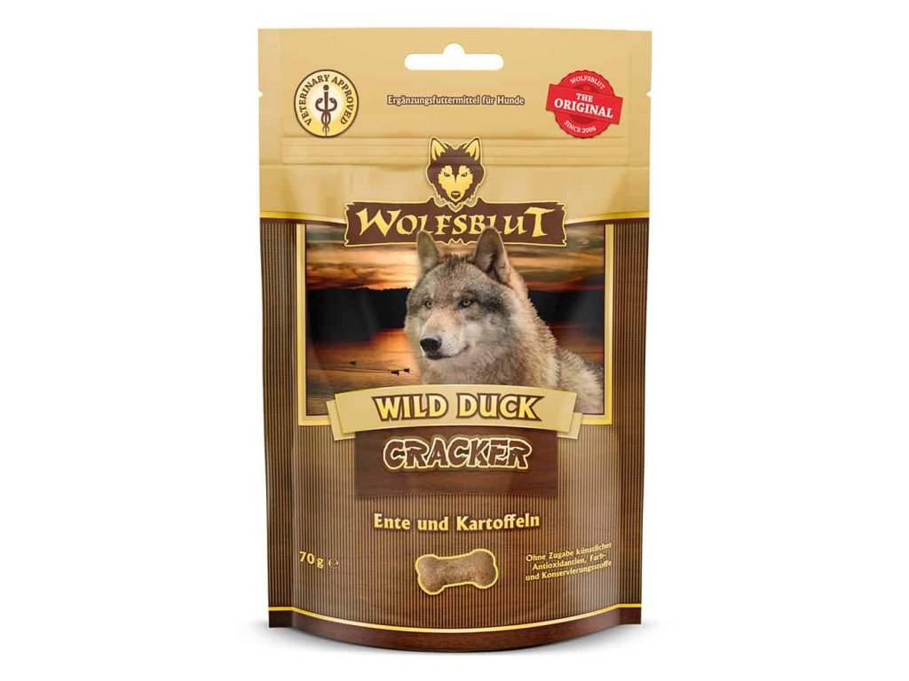Wolfsblut Dog Cracker Wild Duck představují zdravé a přirozené pamlsky pro psy, kteří si zaslouží jen to nejlepší. Receptura s kachním masem (49 %) nabízí lehce stravitelné bílkoviny a bohatou chuť, kterou si váš pes zamiluje.