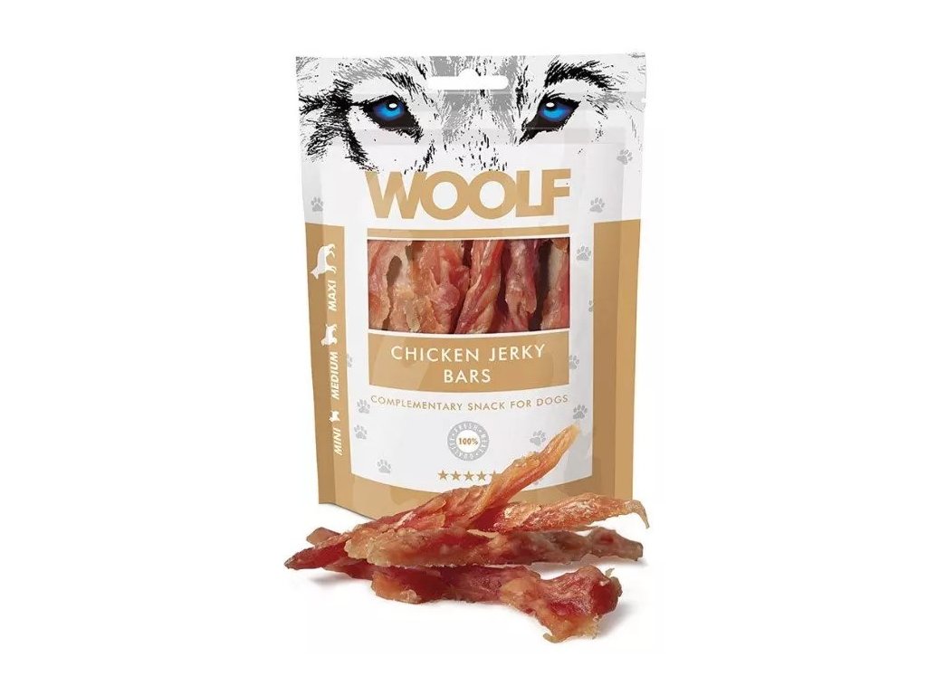 Kuřecí jerky jsou vhodné pro psy, kteří se rádi zabaví na delší dobu. Pochoutku musí nejdříve pořádně rozžvýkat, než ji polknou. Díky tomu dochází k masáži dásní a čištění dutiny ústní. Pochoutky Woolfsnacks jsou speciálně navrženy pro psy všech plemen. Při výrobě jsou ze 100% použity bílkoviny té nejvyšší kvality pro co nejlepší příjem potravy. Veškeré pochoutky Woolfsnacks, jakmile se vyrobí, jsou zabaleny bez chemických přísad, konzervačních látek, nebo barviv. Nekonzumovat okysličovadlo.