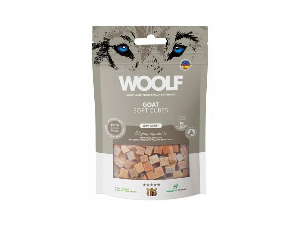 Woolf soft Cubes je pamlsek pro psy, který se může pochlubit charakteristickou polovlhkou texturou, odvozenou výhradně z přírodních ingrediencí. All-Natural: Tento termín označuje použití minimálně zpracovaných surovin bez jakýchkoli syntetických přísad, jako jsou barviva, příchutě nebo konzervační látky. Zcela přírodní pamlsky pro psy používají zdravé, rozpoznatelné složky běžně se vyskytující v přírodě, jako je pravé maso, zelenina, ovoce a obiloviny. Polovlhké: Polovlhké pamlsky pro psy slouží jako přechodná textura mezi suchými psími sušenkami a mokrým krmivem v konzervě. Jsou měkké, poddajné, lehce žvýkací a mají vyšší obsah vlhkosti než tradiční suché pamlsky, což psům usnadňuje jejich žvýkání a poskytuje chutnější zážitek.